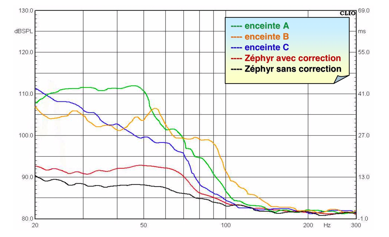 • Courbe verte — même enceinte dans une régie plus grande