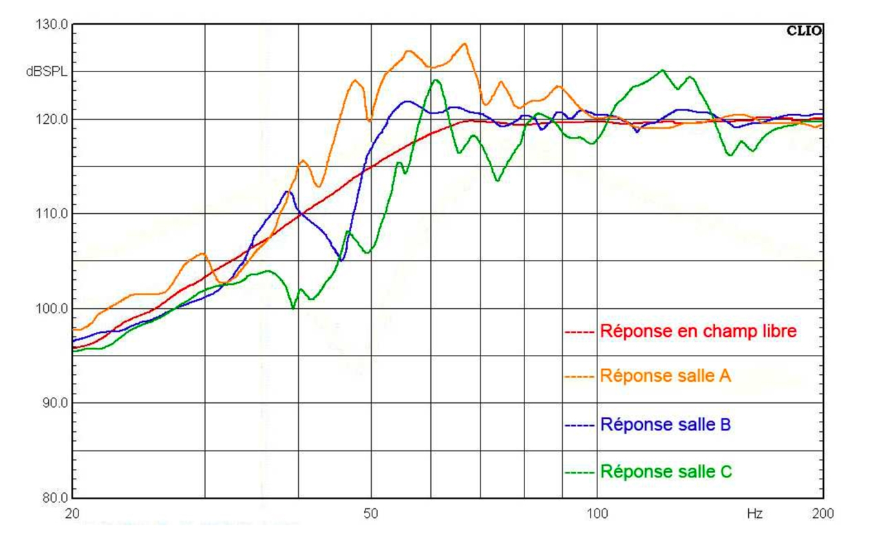 La même enceinte, quatre lieux, jusqu'à 25 dB d'écart dans le grave