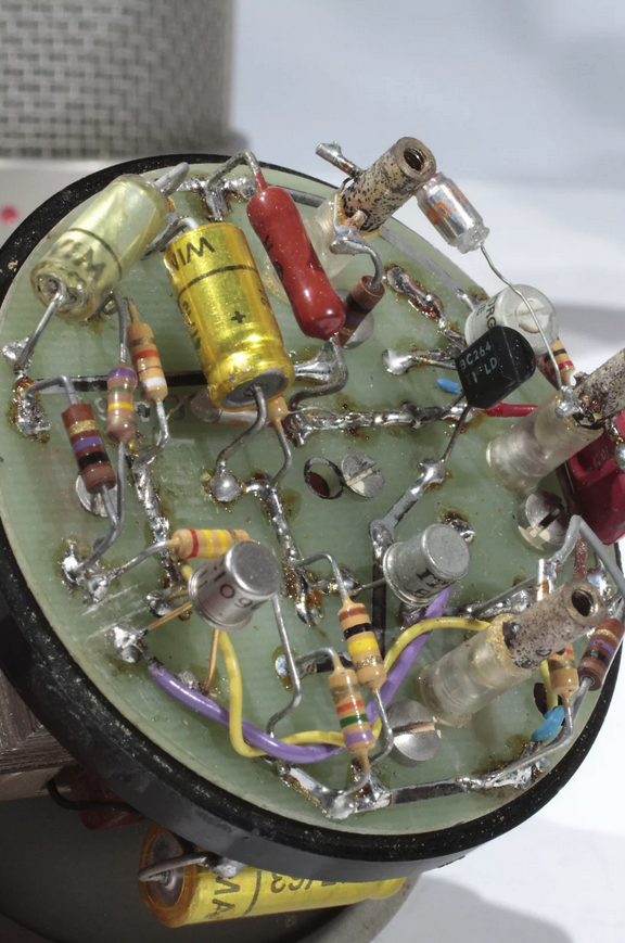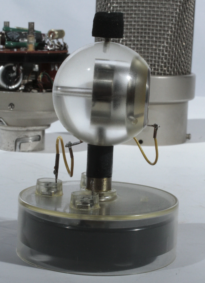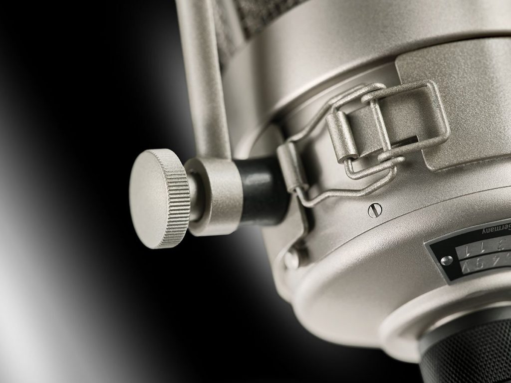 Pour diminuer les ondes stationnaires et les résonances dans le micro, la grille est inclinée à un angle d'environ 10 degrés (contrairement au U47 où elle est parallèle à la capsule).