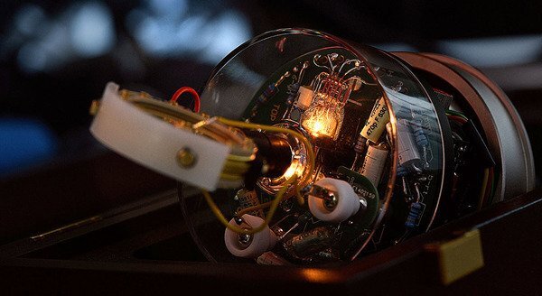 La capsule est montée sur un support en caoutchouc, lui-même fixé sur un capot en plexiglas qui recouvre l’électronique.