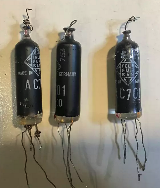 - "K" : Parfois Nommé AC701K : ce "K" que l’on retrouve aussi sur d'autres lampes Telefunken correspond à « Klinkel frei » qui signifie « sans distorsion » ou « sans clic ». Il s’agit théoriquement des meilleures lampes et donc destiné aux micros. Attention, certaines lampes ont le K noté directement sur la lampe et certaines sur la boites...