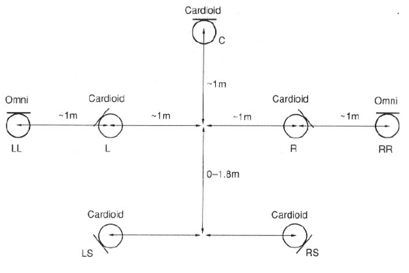 On notera ici le Fukada Tree, un arbre de 7 micros cardioïdes inventé par Akira Fukada pour le Broadcaste Japonais.