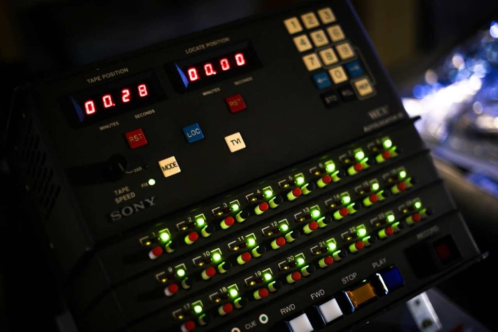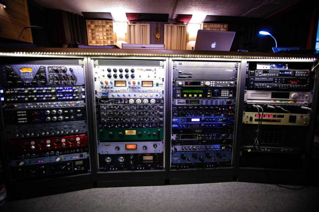 Ça commence par une magnifique SSL 4056 G avec son computer G+ relié à des magnétophones purs analogiques comme le Studer A800 mk3 ou un MCI JH24. 2 Sony 3348HR pour de l'enregistrement numérique linéaire sur bande magnétique (DASH) et un supplémentaire pour du backup. Une collection impressionnante de périphériques en passant par du Manley, TC, Lexicon, Universal audio, Summit, Drawmer, Amek Neve, SSL super analog, SPL…..et bien sûr un parc de micros haut de gamme : Neumann, AKG, Shure, Sennheiser...